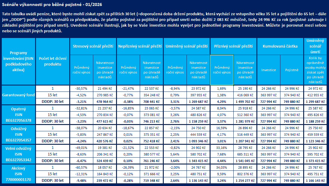 Informace k tomuto pojištění, k programům investování, k ceně podílové jednotky a k jejímu vývoji jsou k dispozici zde: https://fondy.csob.cz/portal/jednorazove-zivotni-pojisteni