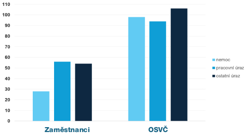 - U OSVČ byla průměrná délka pracovní neschopnosti v roce 2023 kolem 100 dní.